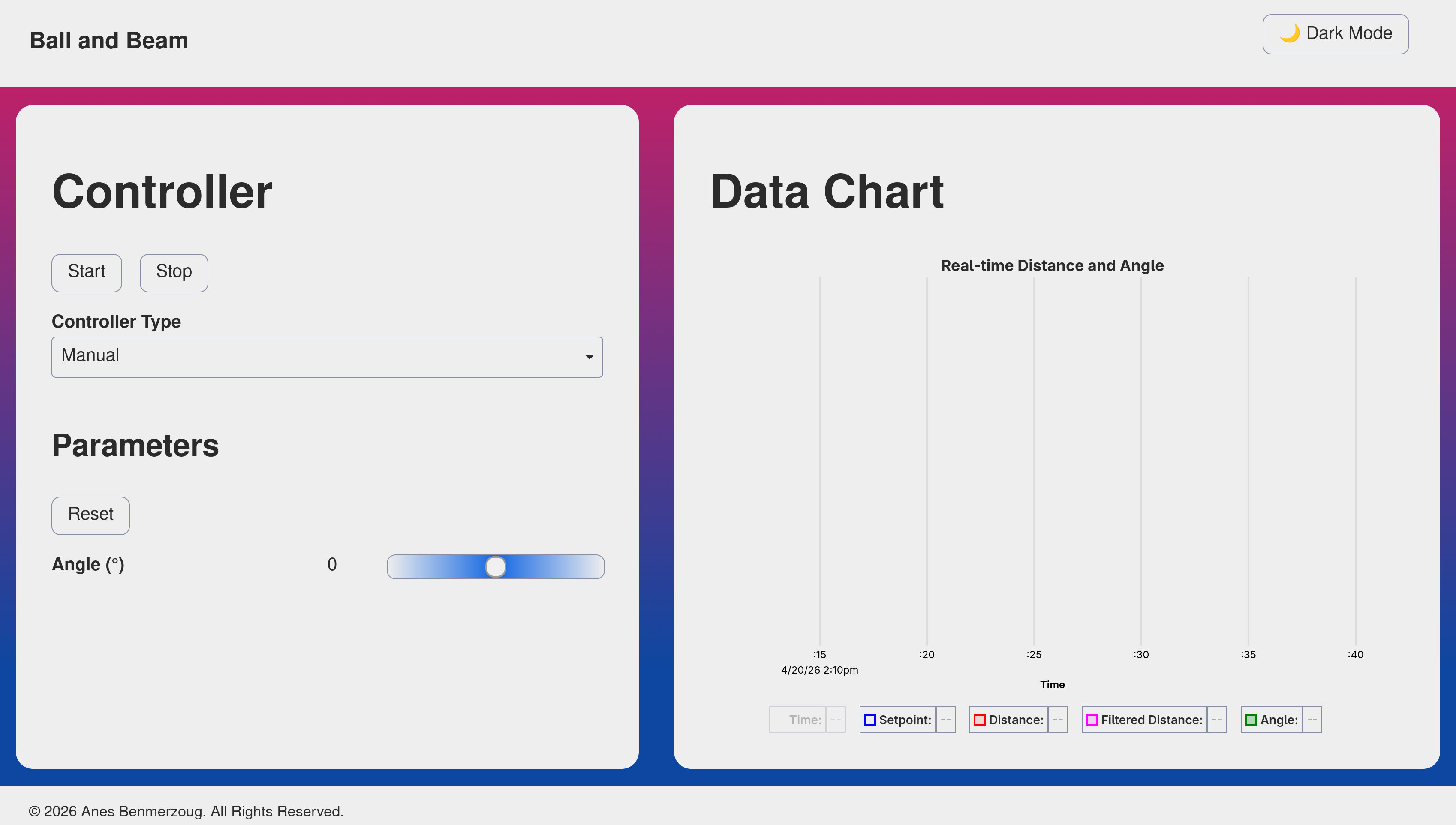 Instead of hosting the UI on an external server, I compiled it into static assets and embedded it directly into the firmware using build.rs and the include_bytes! macro. This means the entire project is self-contained: flash the ESP32, connect to http://ball-and-beam.local, and you’re ready to go.
